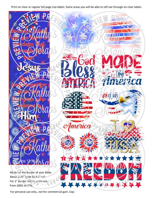 You also can use full page (8.5x11") sticker paper...white or clear...white will have a white background so you will need to fussy cut or use a large punch to use stickers, clear you will just need to trim off other stickers and place wherever...note if there is an image on your page use white, it will show through the clear. Also with the clear sticker paper, the lighter colors you will be able to see the words on the Bible page.